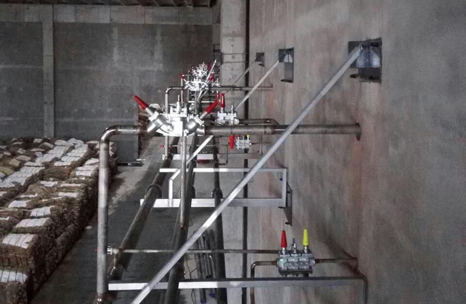 技術實現(xiàn)形式:系統(tǒng)采用2套比澤爾高溫螺桿四組并聯(lián)制冷機組(4*CSH8563-125),1套10 m3桶泵機組,2臺海密梯克冷媒泵,全自動熱氣化霜,不銹鋼冷風機,纖維布風管送風系統(tǒng),雙相不銹鋼管,丹佛斯ICF系列組合閥。