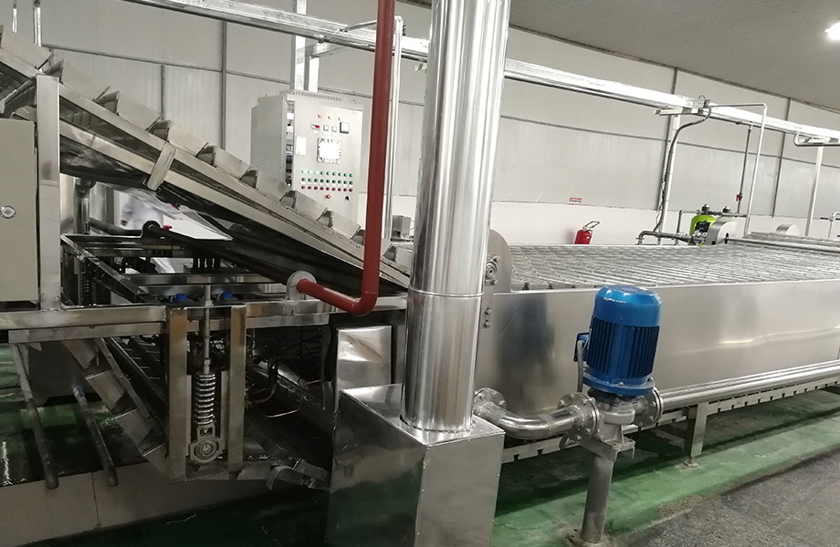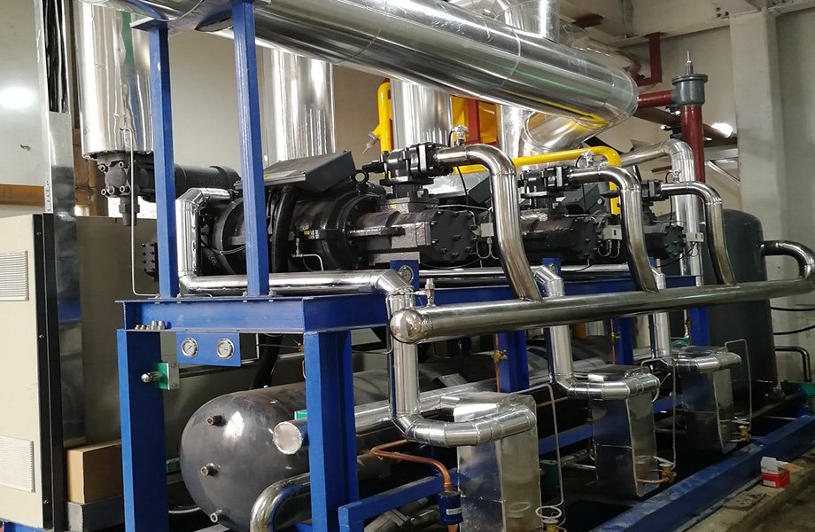 技術(shù)實(shí)現(xiàn)形式:制冷系統(tǒng)采用3臺(tái)復(fù)盛SDL系列單機(jī)雙級(jí)螺桿制冷機(jī)組,冷凝器采用寶豐蒸發(fā)式冷凝器,膨脹閥供液,油路采用虹吸油冷冷卻方式,通風(fēng)導(dǎo)流板設(shè)置。蒸發(fā)器采用?25*2mm鋁管套多孔鋁片,12mm-16 mm變片距, 采用水沖霜。