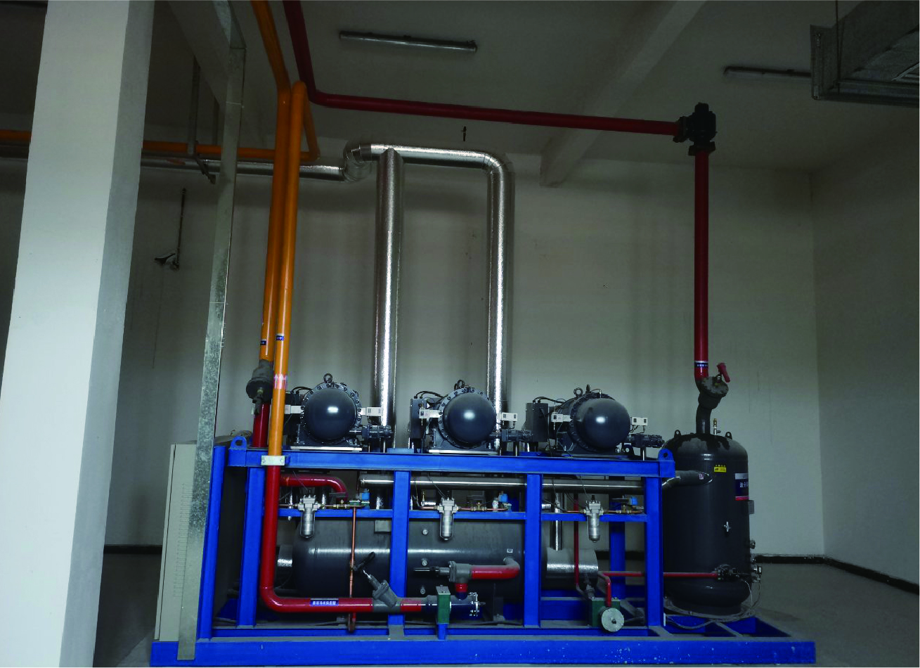 技術(shù)實(shí)現(xiàn)形式:制冷主機(jī)采用大型螺桿并聯(lián)機(jī)組,設(shè)計(jì)為桶泵系統(tǒng)、直膨系統(tǒng),全自動控制。
