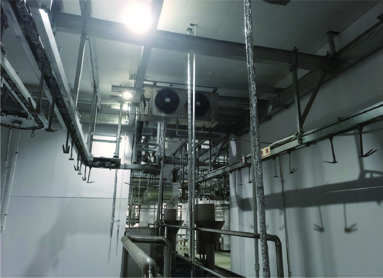 ?????羊生產(chǎn)線排酸4間(最大排酸量2000只/天)、速凍2間(最大速凍量800只/天)、分割車間(510m2,10~15℃)。